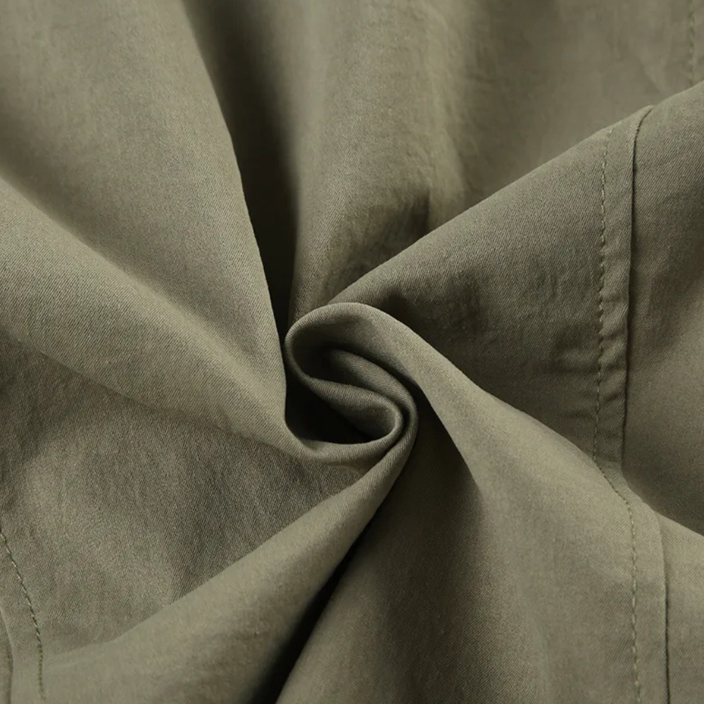 This women's jacket features a stand-up collar and a front zipper closure extending from the neckline to the hem. It has several zippered pockets on the front, integrated into the structure of the garment. The sleeves are long, with simple cuffs, and the hem is straight. The surface of the jacket has a uniform appearance, with seams along the shoulders and sides.