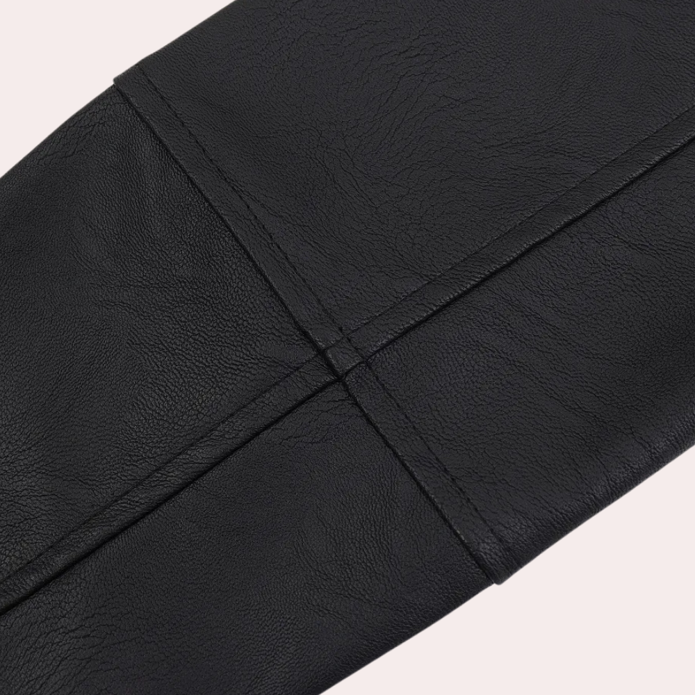 This sweater features a crew neck and a straight cut. The sleeves are long in a contrasting style, with a tightened band at the end that creates a puffed effect. The hems at the waist and cuffs are simple and regular. The seams are visible along the shoulders and sides, and the structure of the garment remains uniform.